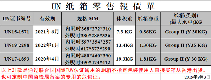 香港海運危險品紙箱 急速發(fā)貨