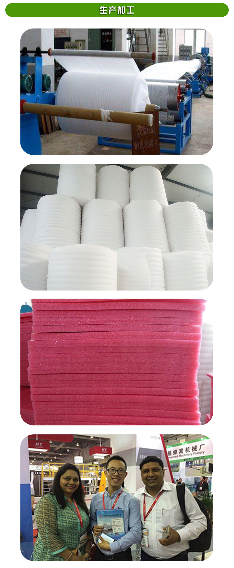 珍珠棉還可以進行深加工,只需配制珍珠棉復膜機、復合機即可,在EPE片材的表面覆合HDPE膜,鍍鋁膜、涂塑紙、涂塑布等,經覆膜后的EPE片板,不但提高機械強度,而且還可提高原有的各種性能和附印刷各種圖案、文字、擴大產品宣傳力度。并且對復合后的片材可廣泛應用到箱內襯、救生衣、隔熱、防潮帳棚等的內襯墊料等,經濟效益隨著翻倍增長。